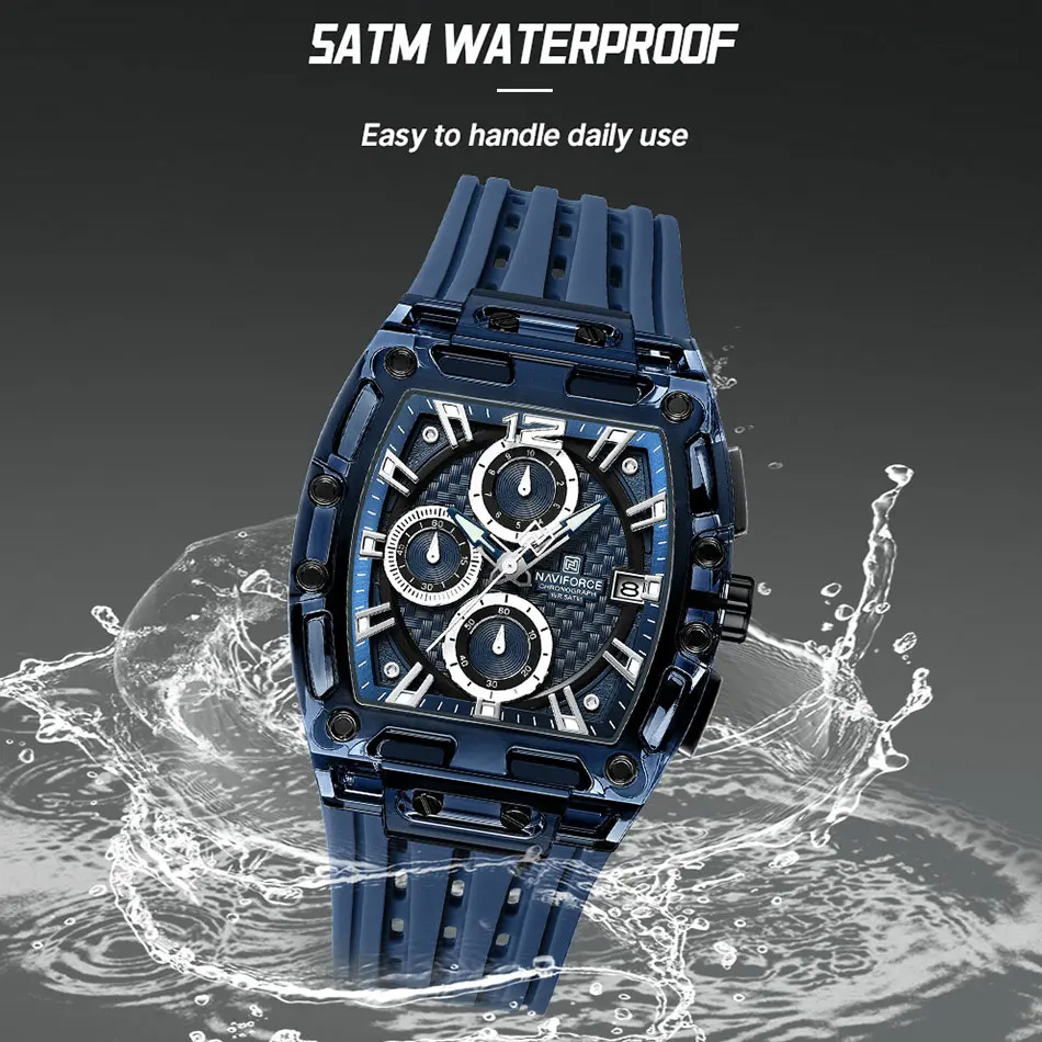 NAVIFORCE Men's Watch High Quality Quartz Fashion Clock Waterproof Silicone Tape