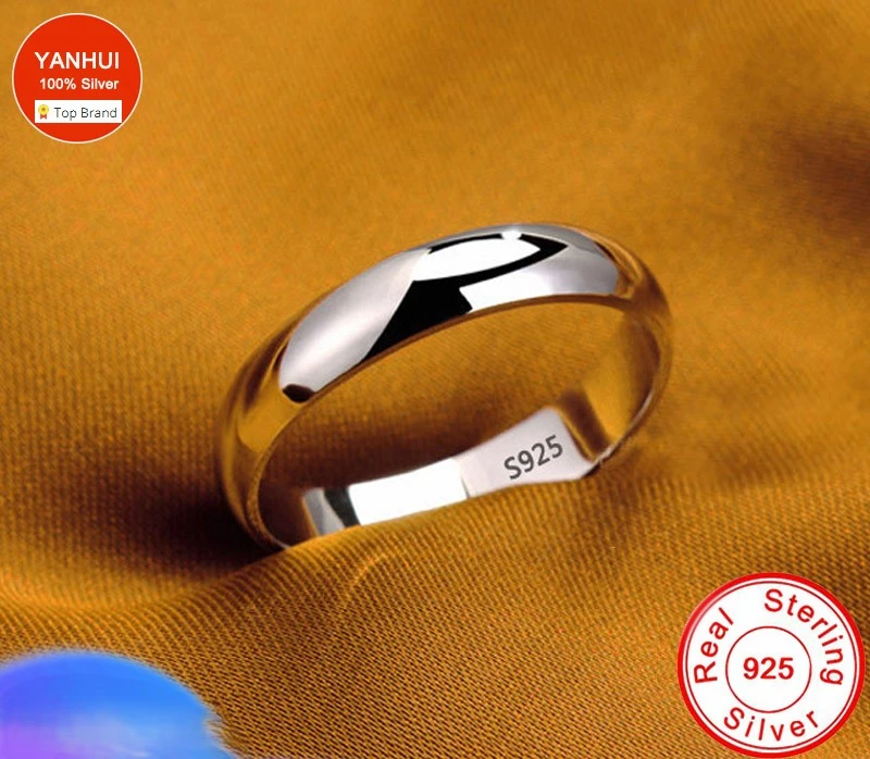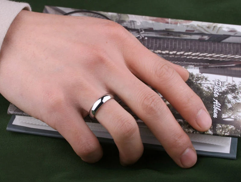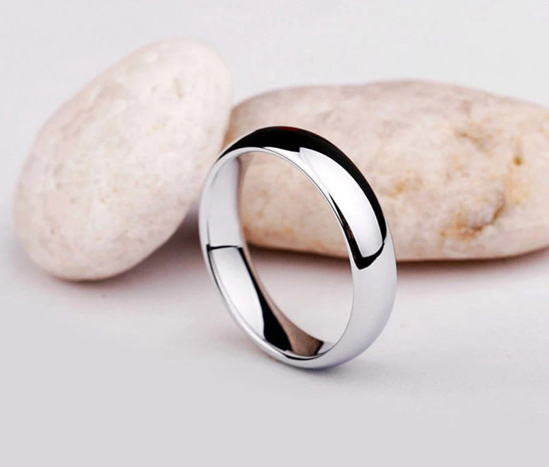 Never Fade Simple 4mm Glossy Stainless Steel Ring Couple's Silver Color Wedding