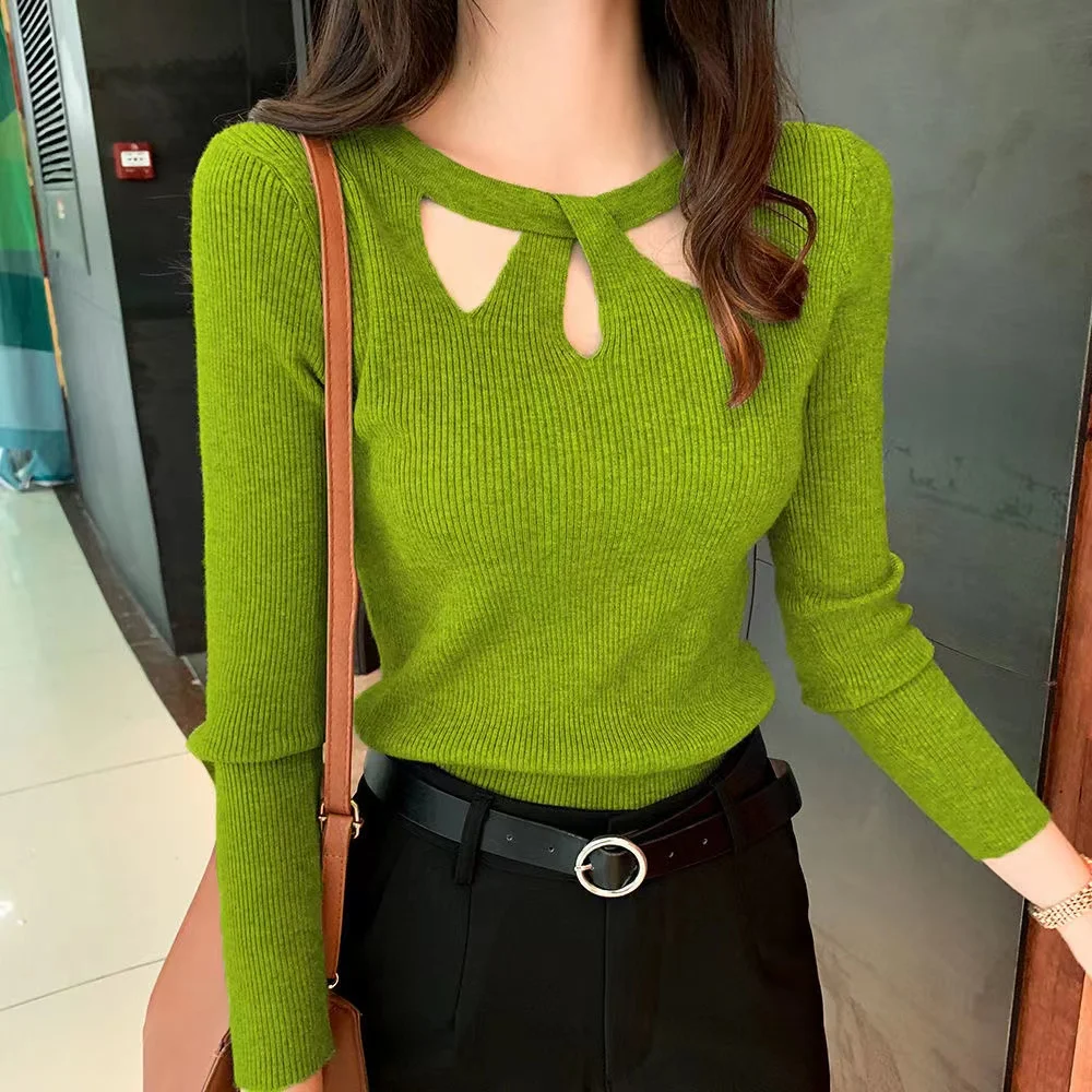 Autumn and Winter Women's Slim Stretch Sexy Pullover Hollow Solid Color Sweater Slim Bottoming Shirt Sweater Ladies SIZE CHART