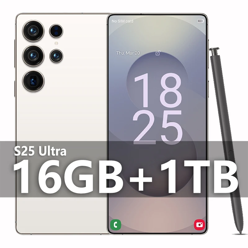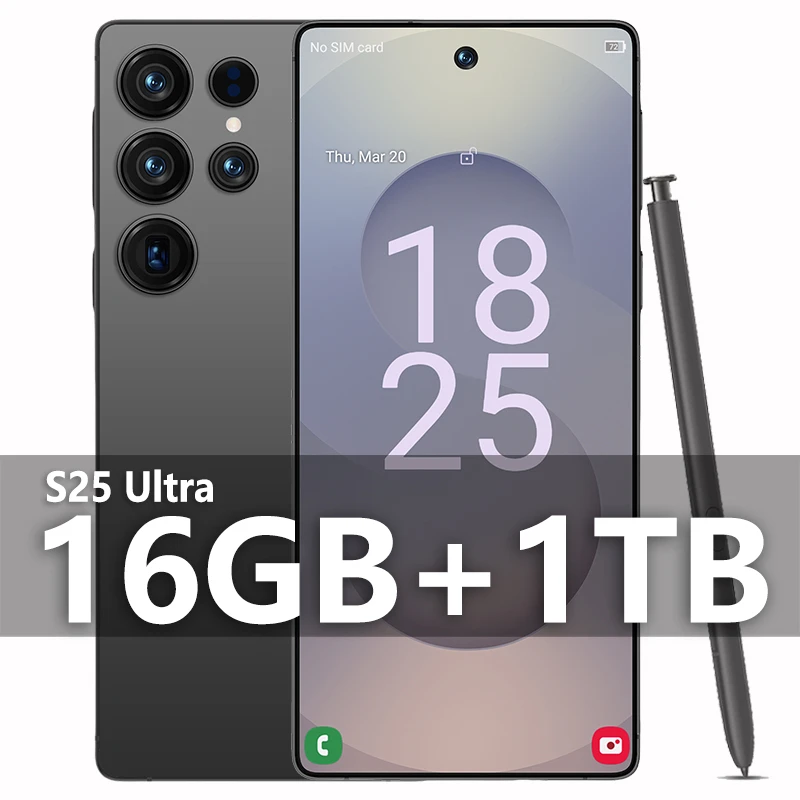 S25 Ultra Mobile Phones 7.3 HD ScreenSmartPhone Original 22GB+2TB 4G 5GDual Sim Celulares Android Unlocked8000mAh S24 Ultra Model: S25 Ultra Rear cover: Incell HD+ screen with built-in all-in-one premium hot curved glass rear cover Network system: 5G, dual-card dual-standby, Nano SIM card. Screen inches: 7.3-inch HD+ screen (The display has a curved, rounded corner design, and inches are the diagonal length of the screen when the rounded corners are stretched to a right Angle) Resolution: 2400X3088 pixels Running memory (RAM) is 22GB Body memory (ROM) 2TB Intelligent wake-up face recognition, in-screen fingerprint unlock, with WIFI+BT+FM+GPS, Type-C charging interface Type-C headphone interface Android 14 The front-facing camera has a 50-megapixel F/2.0 aperture and a fixed focal length Rear camera 108-megapixel (colour, F/1.8 aperture) autofocus Battery capacity 8000mAh Shipping standard: mobile phone + packaging box + instruction + head charger +Type-C+ headphone + mobile phone protective film + protective cover Packing box inches: 180*95*55 full weight:400G It is neutral without a brand.