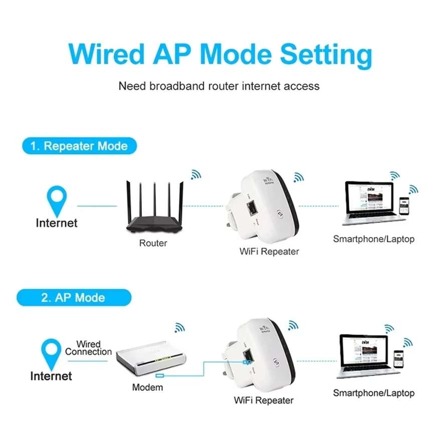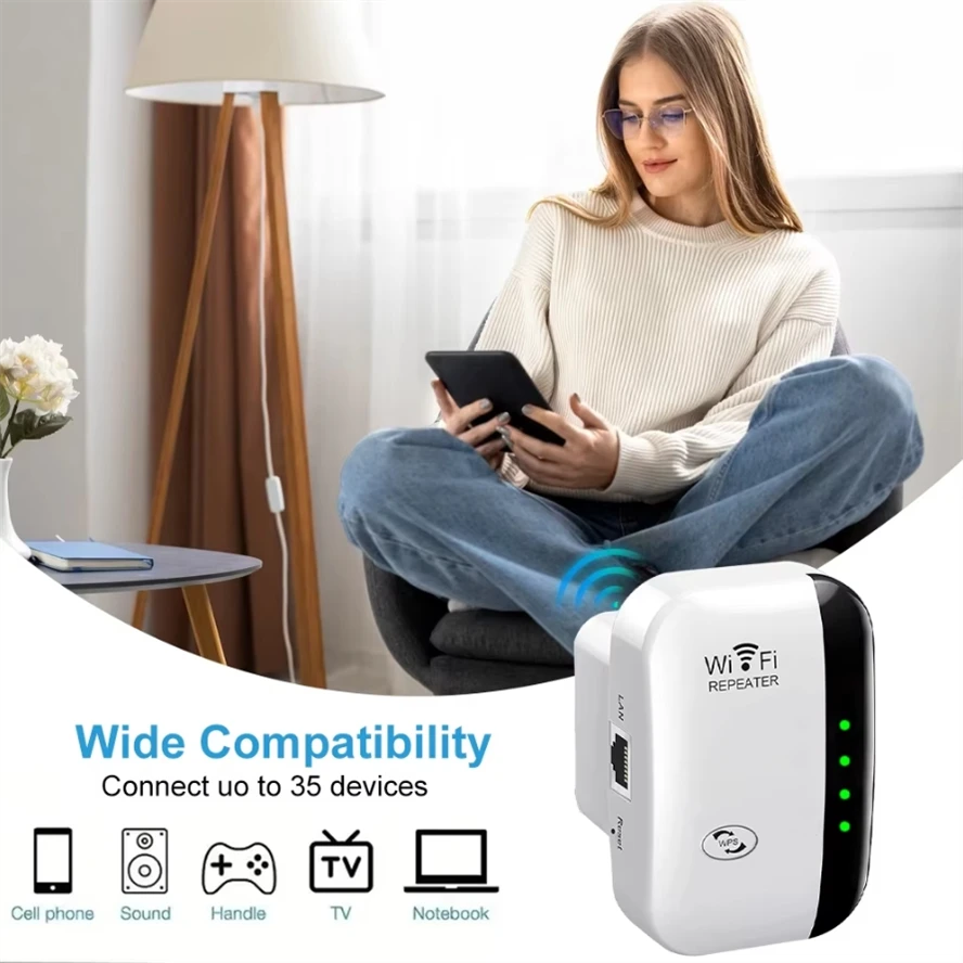 Wifi Repeater Wireless Signal Amplifier Extended Network Enhancer EU US Home Router 300m Through The Wall Bedroom Receive Moving