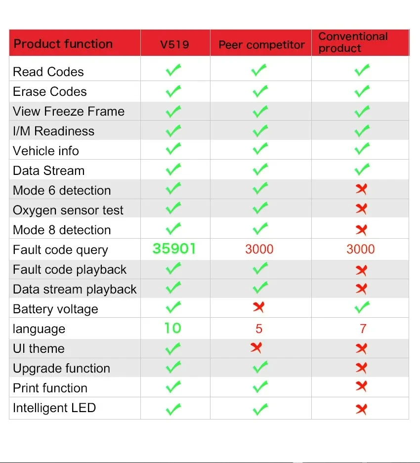OBD2 V519 Scanner Live Data Professional Mechanic OBDII Diagnostic Code Reader Tool for Check Engine Light Read/Erase Codes |