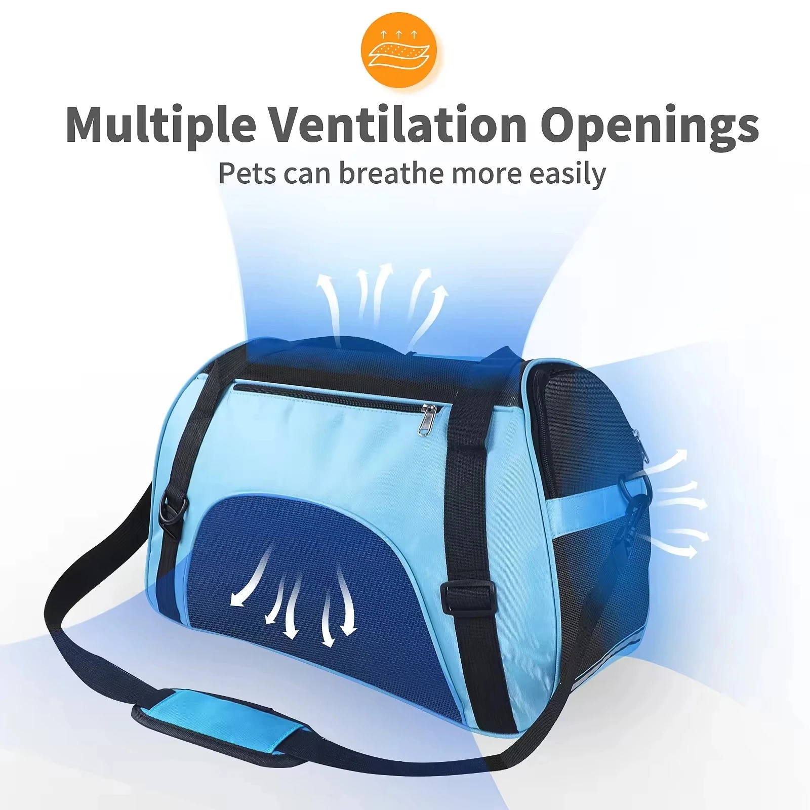 Cat Bags Portable Dog Carrier Bag Mesh Breathable Carrier Bags for Small Dogs Foldable Cats Handbag Travel Pet Bag Transport Bag • Soft-sided design for pet comfort :The soft-sided design of this cat carrier ensures that your pet is comfortable and safe during travel. • Portable and foldable for easy storage :This cat carrier is portable and can be easily folded, making it convenient to store when not in use. • Suitable for cats, dogs, and puppies :This pet carrier is suitable for cats, dogs, and puppies, making it a versatile option for pet owners. • Durable nylon material for long-lasting use :Made from durable nylon material, this cat carrier is built to last and withstands wear and tear. Description: 100% Brand New Material:Nylon Size: Quantity:1 Package Contents:1/storage bag