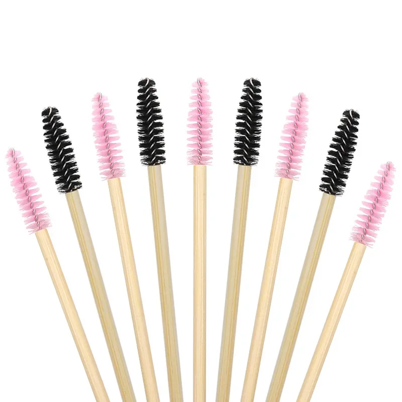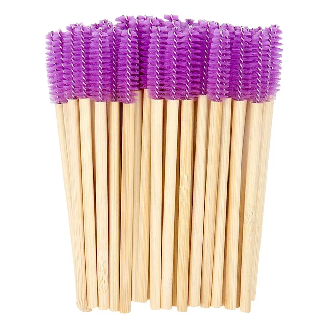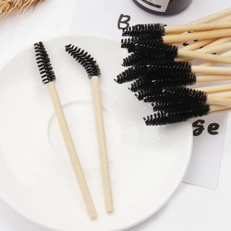 Practical 50pcs Bamboo Handle Disposable Silicone Eyelash Brushes Eyebrow Extens