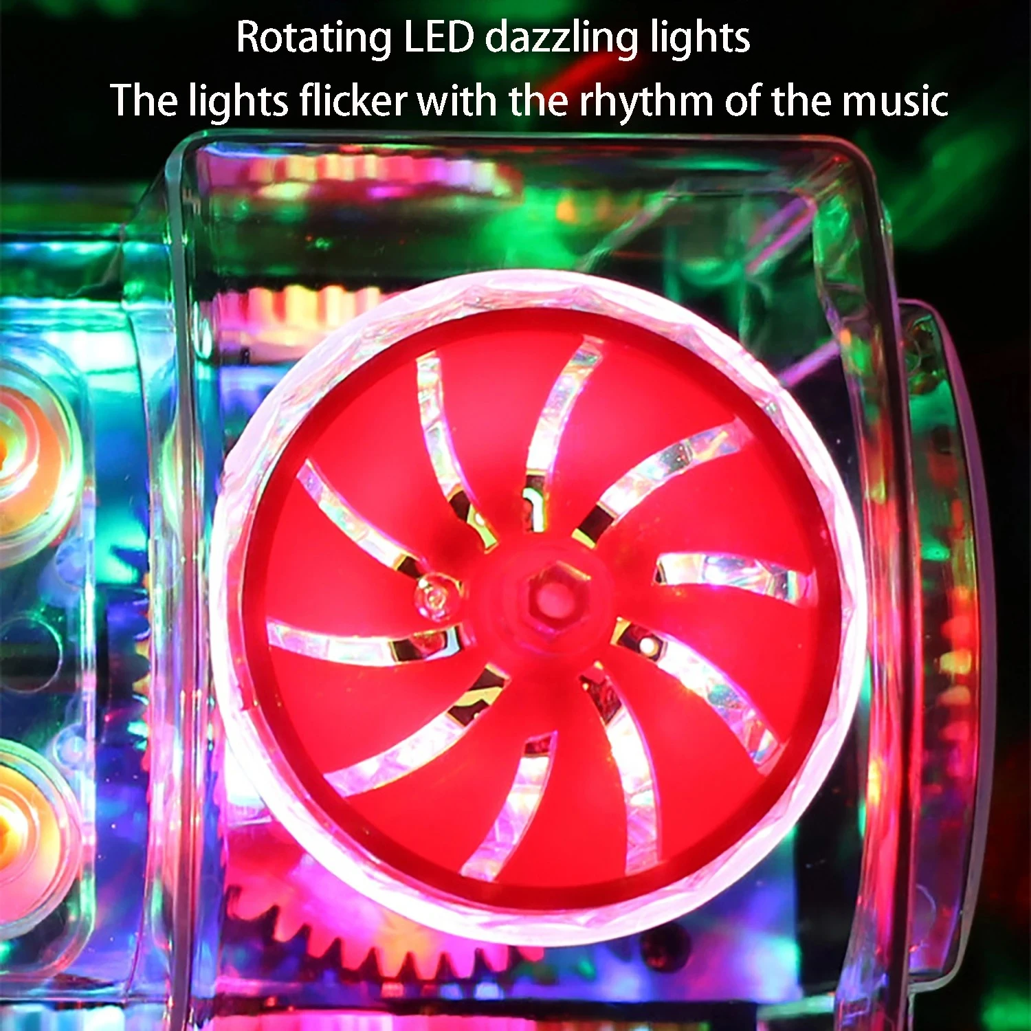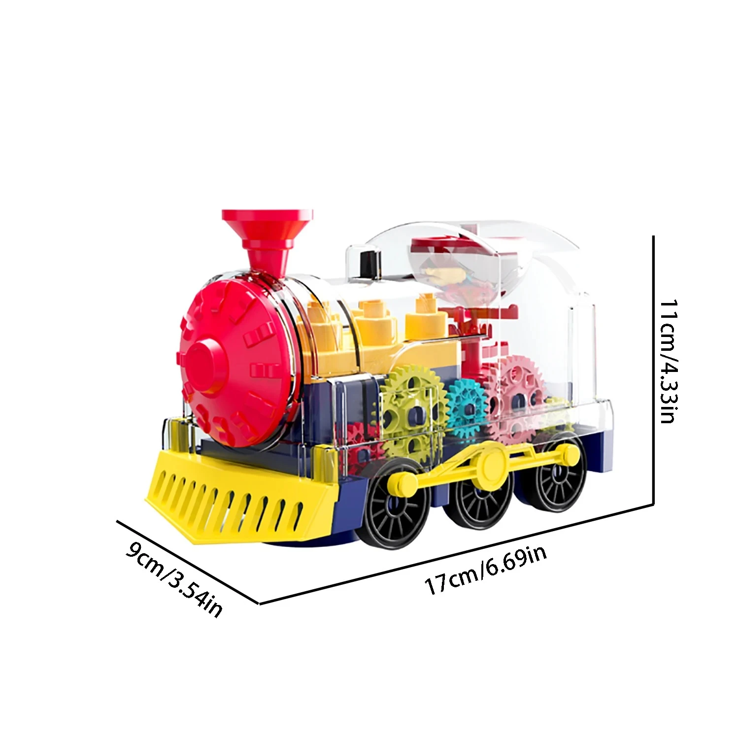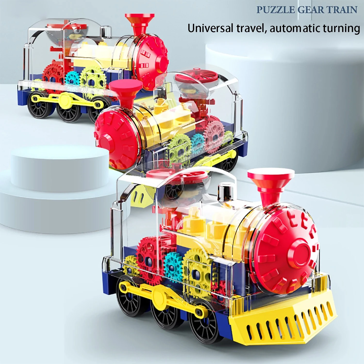 Puzzle transparent gear small train, lighting, music, universal walking, children's electric toy car, self-contained battery