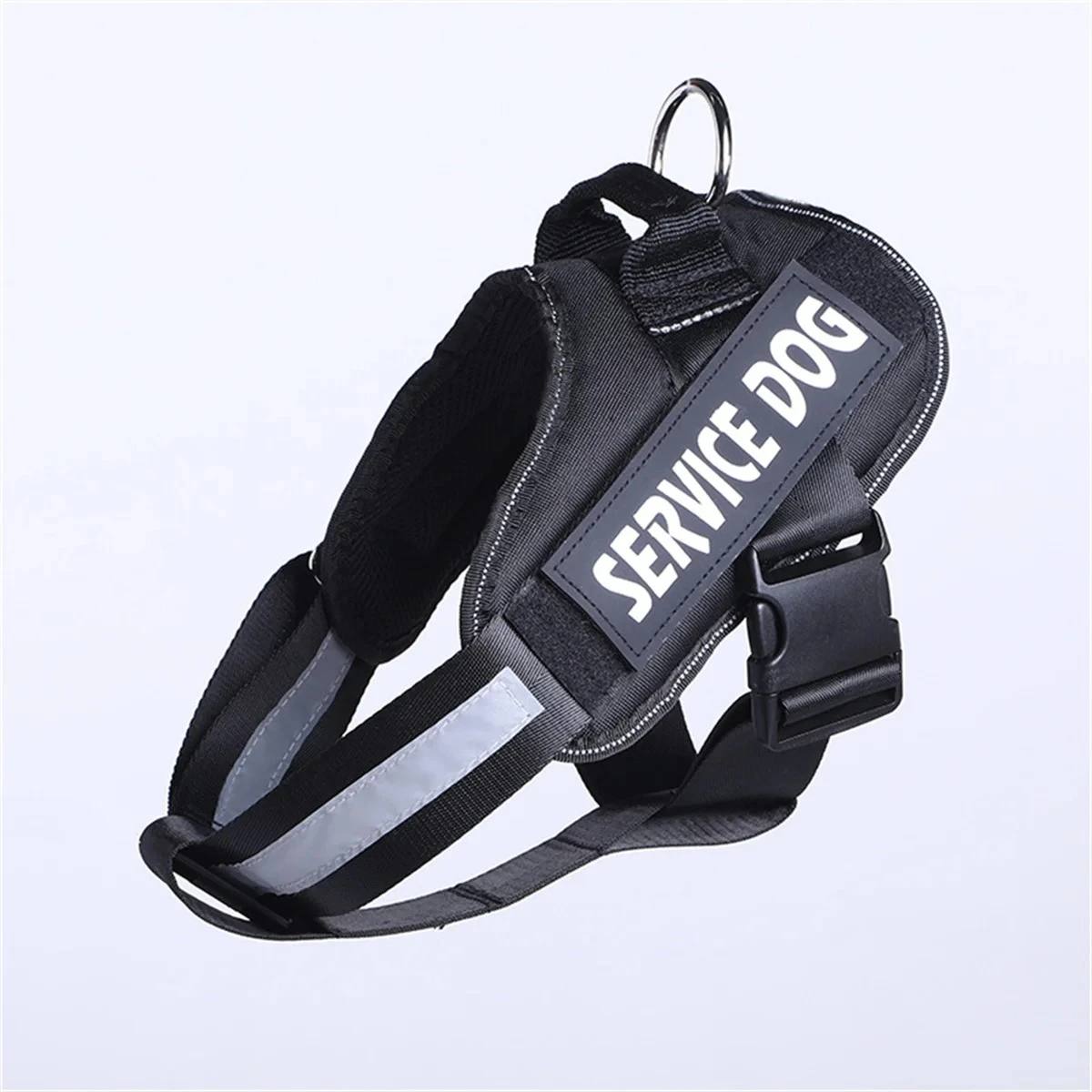 Easy to dress, comfortable to wear . The adjustable neck and chest strap ensure a comfortable fit and prevent the backpack from shifting when your dog moves. Efficient 3M reflectors improve visibility in the dark. The back is equipped with a handle for better control of your dog in difficult places. Harness: - Adjustable NECK / CHEST girth with 5 sizes. - Highly Visible Reflective straps for safety outdoor activities. - Ergonomically designed to accommodate everyday training and walking - Constructed of no pull/ no choke design to make daily walk easier - Weld metal D-Ring is made for easy latch for harnesses or emergency tie-ins - Durable neck / chest buckles allow for quick and easy on/off - Mesh Chest pad and mesh neck pad for comfort and protection, breathable - Replaceable / removable taps patches or other ID patches to IN TRAINING SERVICE DOG EMOTIONAL SUPPORT DO NOT PETmeet different situations. - With this pet vest on, your girl/boy looks more formal and handsome when she/he is exploring something in the woods. 5 Sizes with Adjustable Straps fit every size dog! Find the best fit for your dog by adjusting the slide straps. Please check size chart from second main photo. Package Include: 1 PCS Dog harness 1 Pair Removable Patches(please leave us a message about which patch you choose, if we do not receive your message within 3 hours, we will send service dog patches for buyer. ) Please leave a message about which ONE PAIR patches you will choose? thank you. Here is our patches, A: Emotional support, B:Therapy dog, C: Do not pet D:Service dog in training, E: Service dog. Attention: All dimensions are measured manually with a variation of 0.5-2inches. A small dog does not mean it will fit into small size. You have to take various measurements into consideration before you purchase this harness! Please do NOT buy it based on previous owned harness.