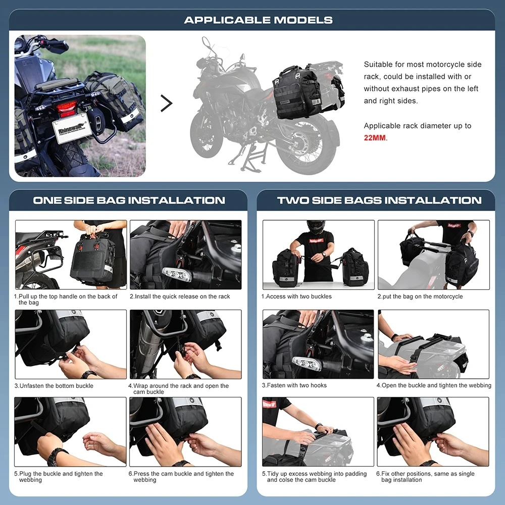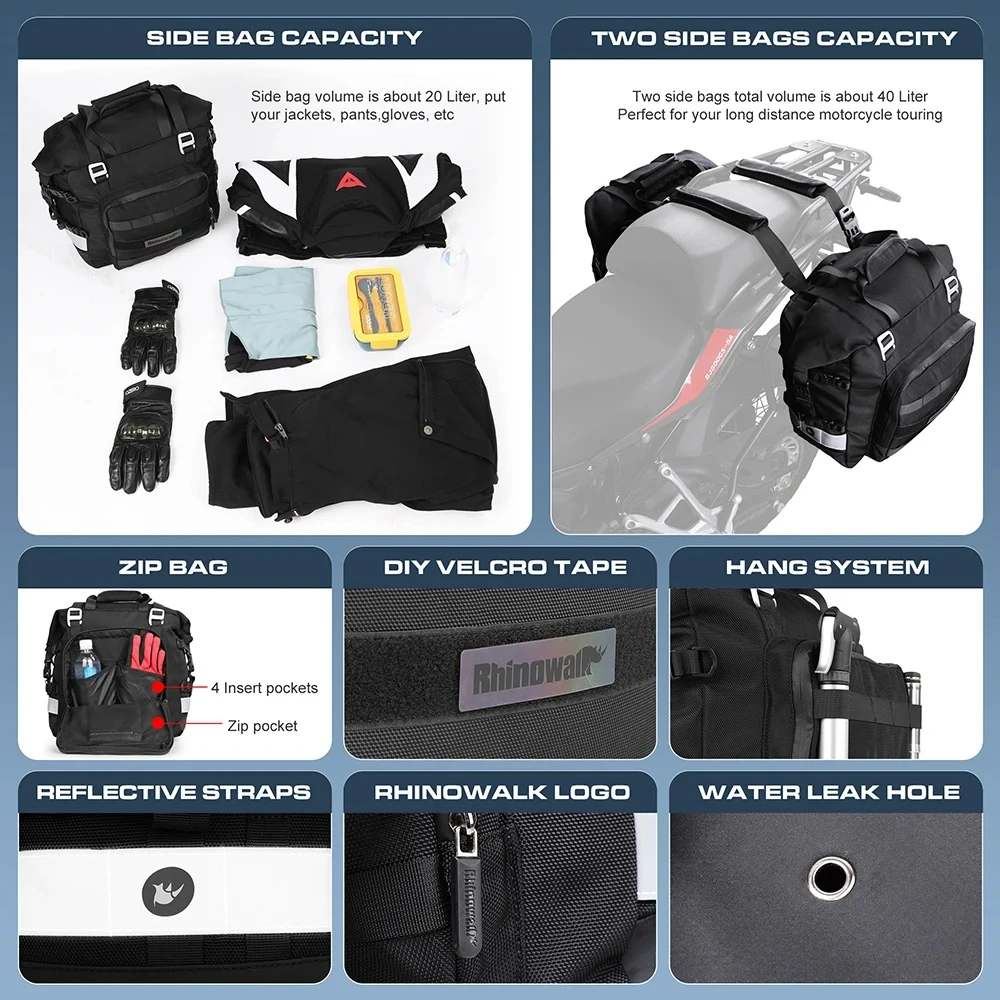 Rhinowalk Motorcycle SaddleBag 20L-30L Universal Side Bag With Removable 100% Waterproof Inner Bag Travel Motorbike Luggage |