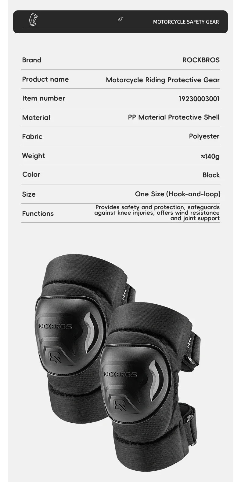 Product detail Material:Polyester Fabric Product feature Shock-Absorbing Lightweight PP Shell ![]() ![]() Shock-Absorbing Lightweight PP Shell Lightweight and durable, capable of absorbing shocks and falls ![]() Free Bending for Easy Joint Movement Ergonomic design for a better fit, making joint movement easier ![]() Three-Second Quick Wearing and Detaching Large Hook-and-loop Adhesion for Easy On and Off ![]() ![]() Reflective Warning for Night Riding Safety Knee pads feature reflective designs on both sides, enhancing visibility during nighttime rides ![]() Product Details |