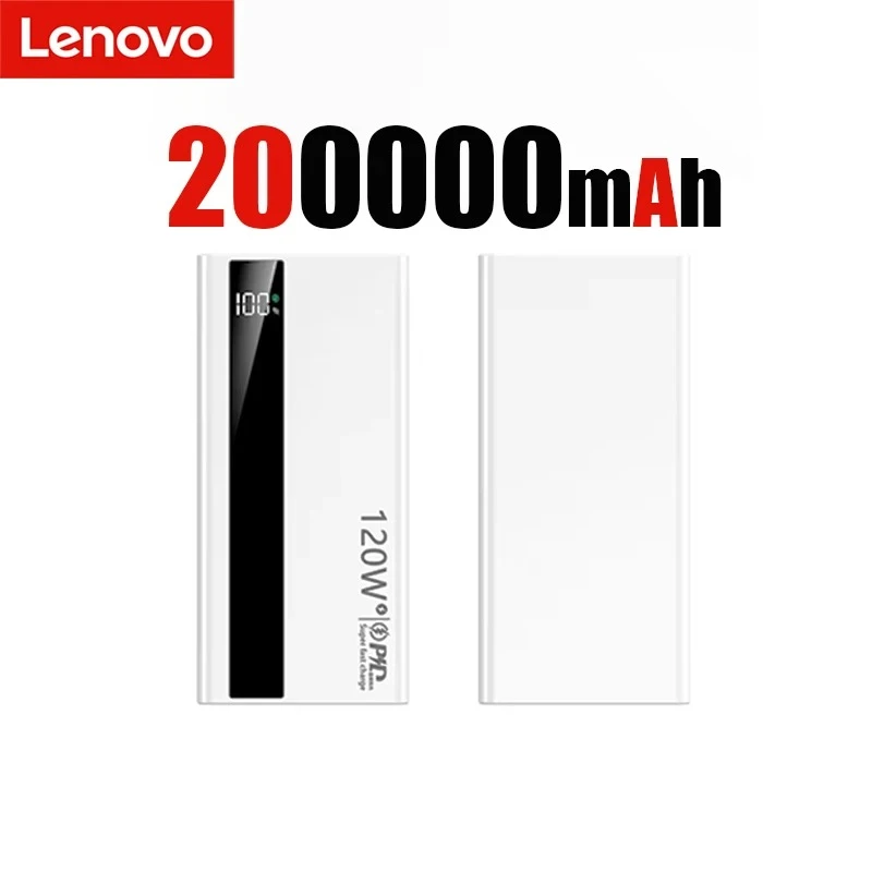 Lenovo 500000mAh 120W Fast Charging High Capacity Power Bank External Battery Portable Battery Charger For iPhone Samsung Welcome to my store! Below is some information about the products that I hope will help with your shopping. 【 Lenovo Big Mac Power Bank 】 200000mAh ultra large capacity | 120W fast charging | bidirectional self charging | black and white dual color Core selling points (key points): ⚡ 120W Fast Flash Charge, Say Goodbye to Long Waiting Is the phone battery running low? In just over ten minutes, it can quickly recharge your flagship phone, with charging speed comparable to the original fast charging head. Supports Lenovo's 120W private protocol and provides high-power PD fast charging for most mainstream phones. 🔋 200000mAh ultra large energy, worry free battery life Enough to fully charge the phone about 16-20 times, or provide about 5 full charges for the laptop. Long distance business trips, outdoor trips, music festivals, completely get rid of 'battery anxiety disorder'. 🔄 Bidirectional 120W fast charging, self charging is also fast Not only is the output fast, but the self charging is also equally fast. It only takes about 40 minutes to fully charge the power bank, saving you valuable time. 🎨 Simple and fashionable, black and white classic Deep Black: Steady and atmospheric, with extraordinary texture. Simple white: pure and elegant, simple and fashionable. The two colors satisfy different aesthetics and are both trendy accessories for going out. 🛡️ Multiple security protections, accompanying with peace of mind Built in intelligent chip, providing comprehensive protection such as overvoltage, overcurrent, overcharge, short circuit, temperature control, etc., to safeguard your device and power bank itself. Features: Three interfaces,Digital display Support Quick Charge Technology: Two-way Quick Charge Input Interface: Micro USB,USB Type C Output Interface: USB-A,USB-Type C Battery Type: Li-polymer Battery Certification: CE Max Input: 120W Packing Included: 1 x Power Bank 1 x Charger Cable 1 x Retail Box