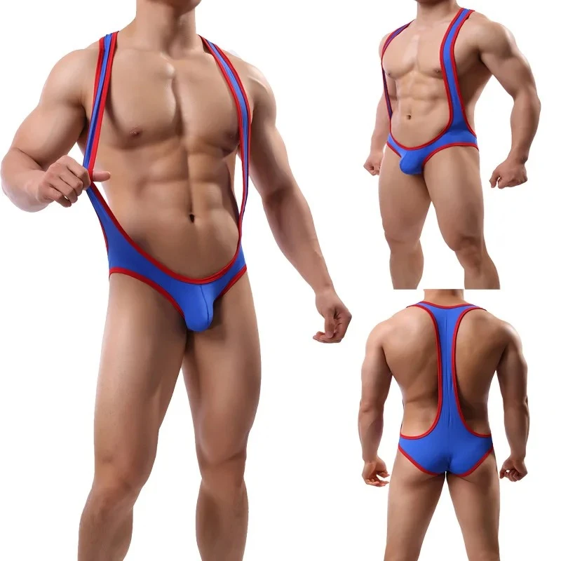 Sexy Ice Silk Bodysuit Cross Strap Men Thong Convex Pouch Lingerie Erotic Breathable Man Costume Buttocks Hollow Gay Underwear