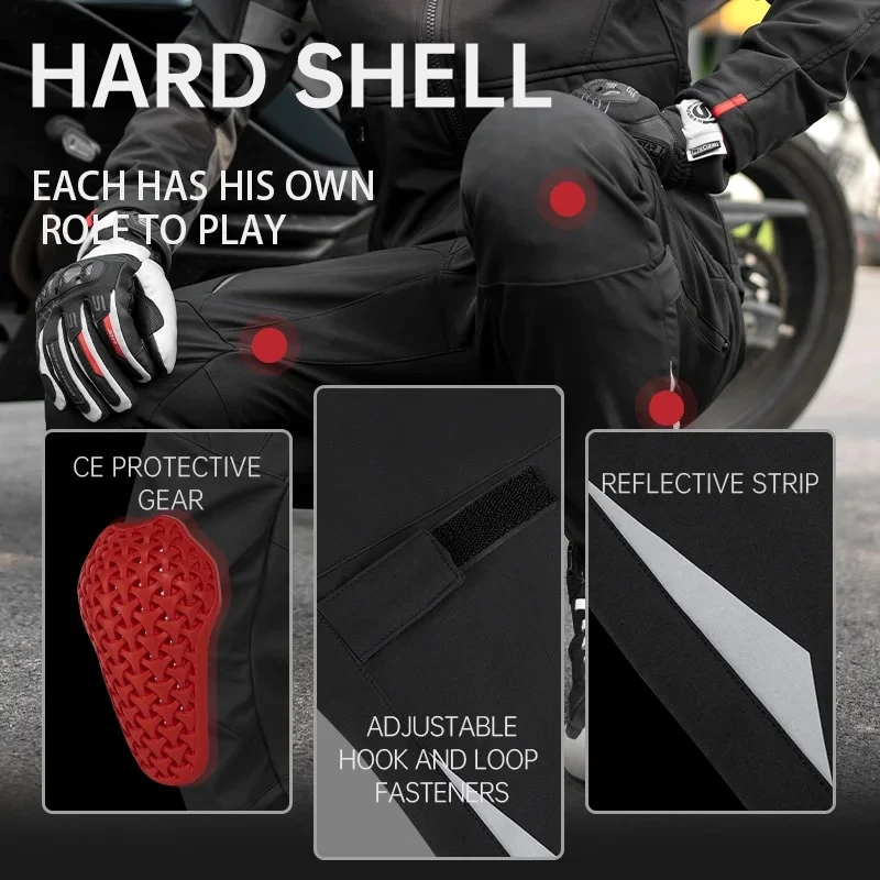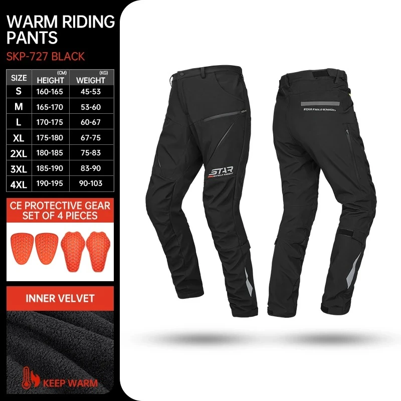 SFK Men's Motorcycle Pants Winter Fluff-lined For Warmth Windproof Splash-proof Riding Trousers With CE Protective Accessories