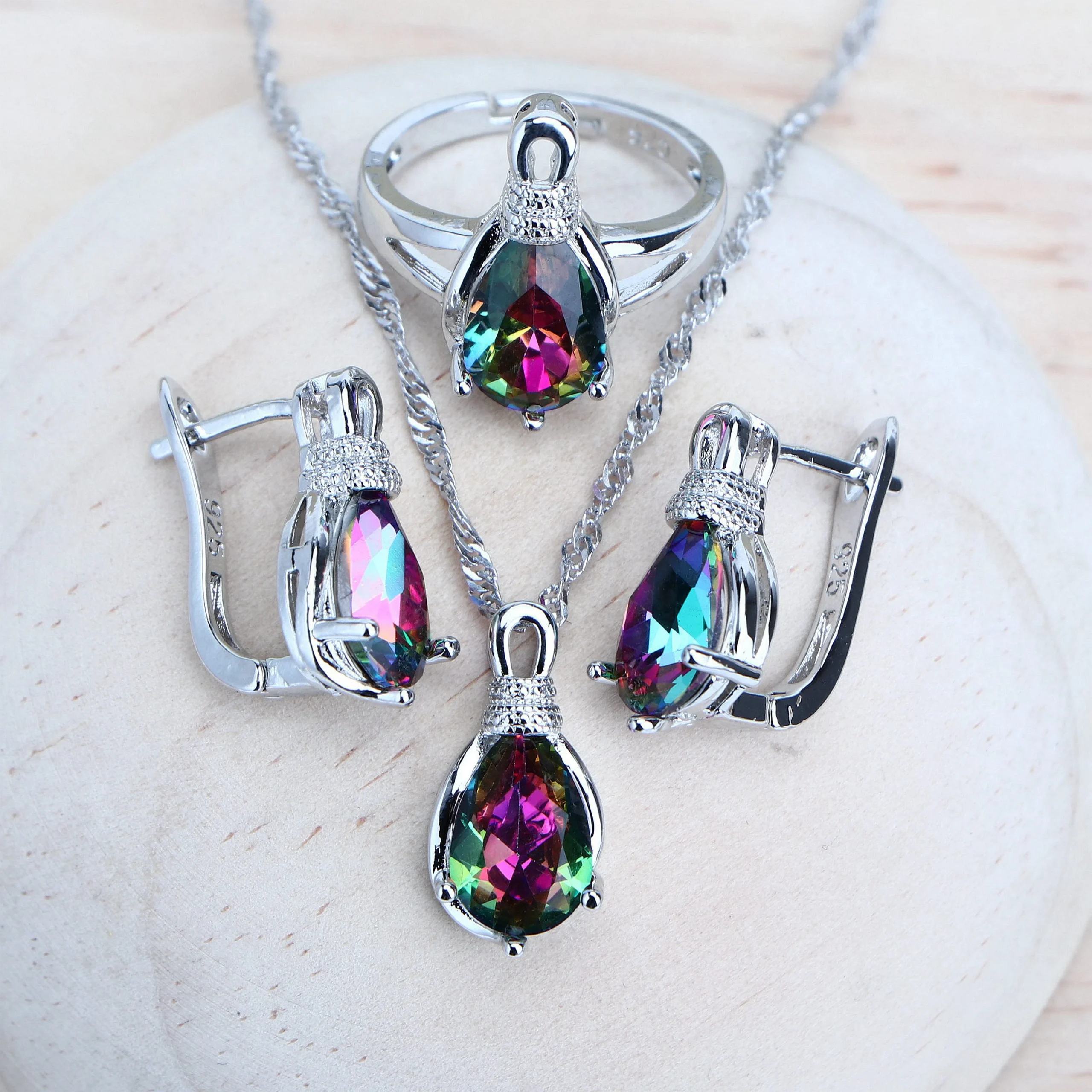 Silver 925 Women Bridal Jewelry Sets Rainbow Cubic Zirconia Costume Jewellery We
