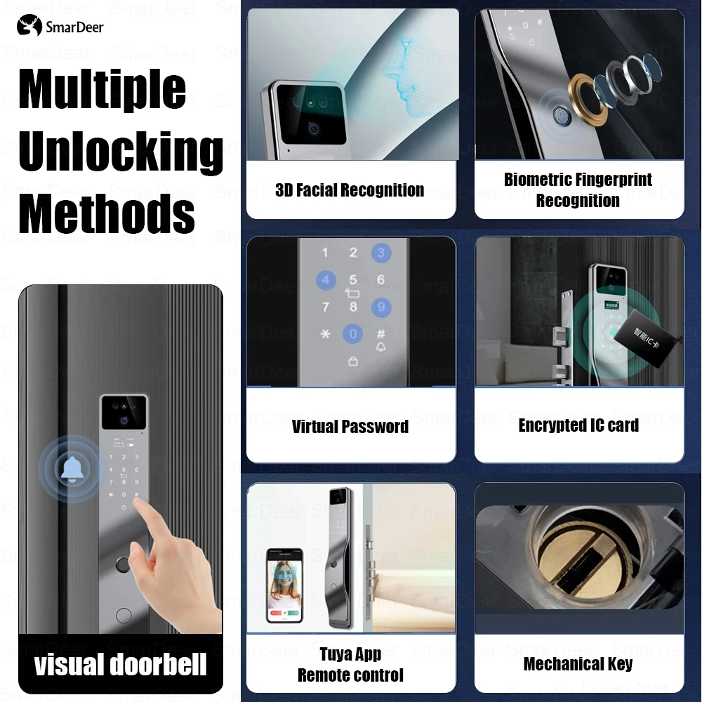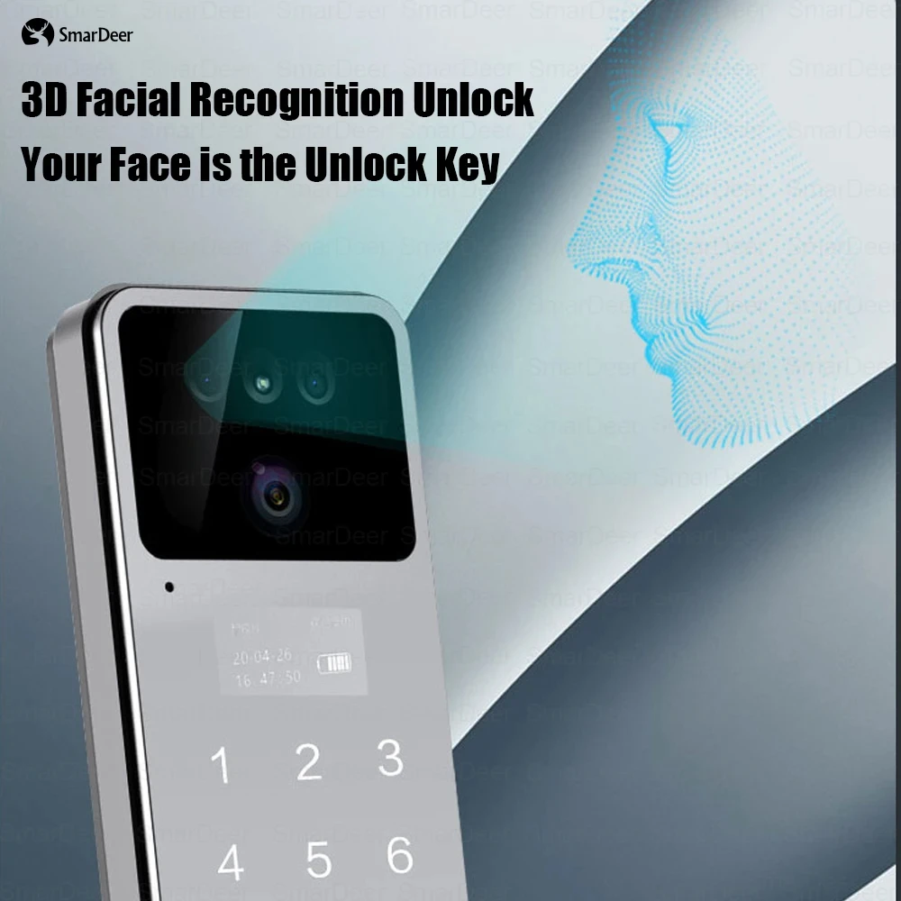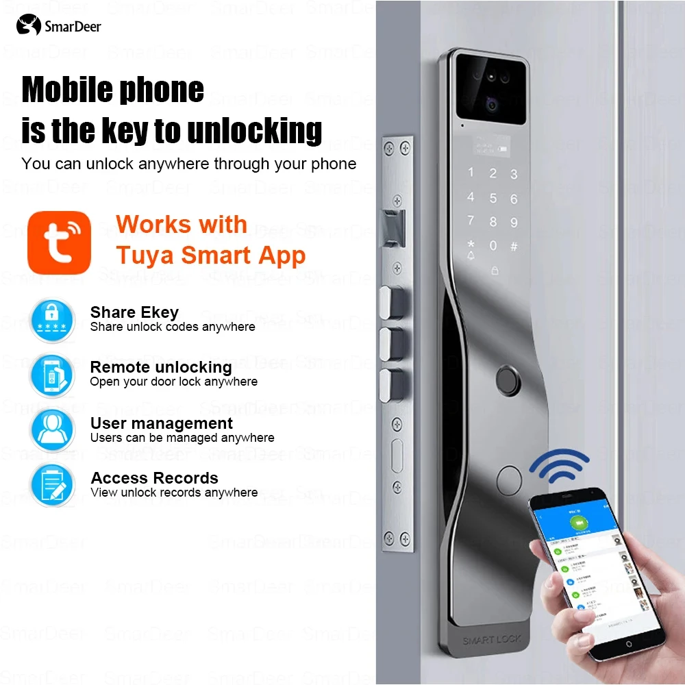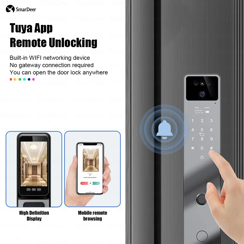 SmarDeer Electronic Lock For Tuya Smart lock with Camera Facial Recognition Door Lock With Voice intercom and Video Surveillance.