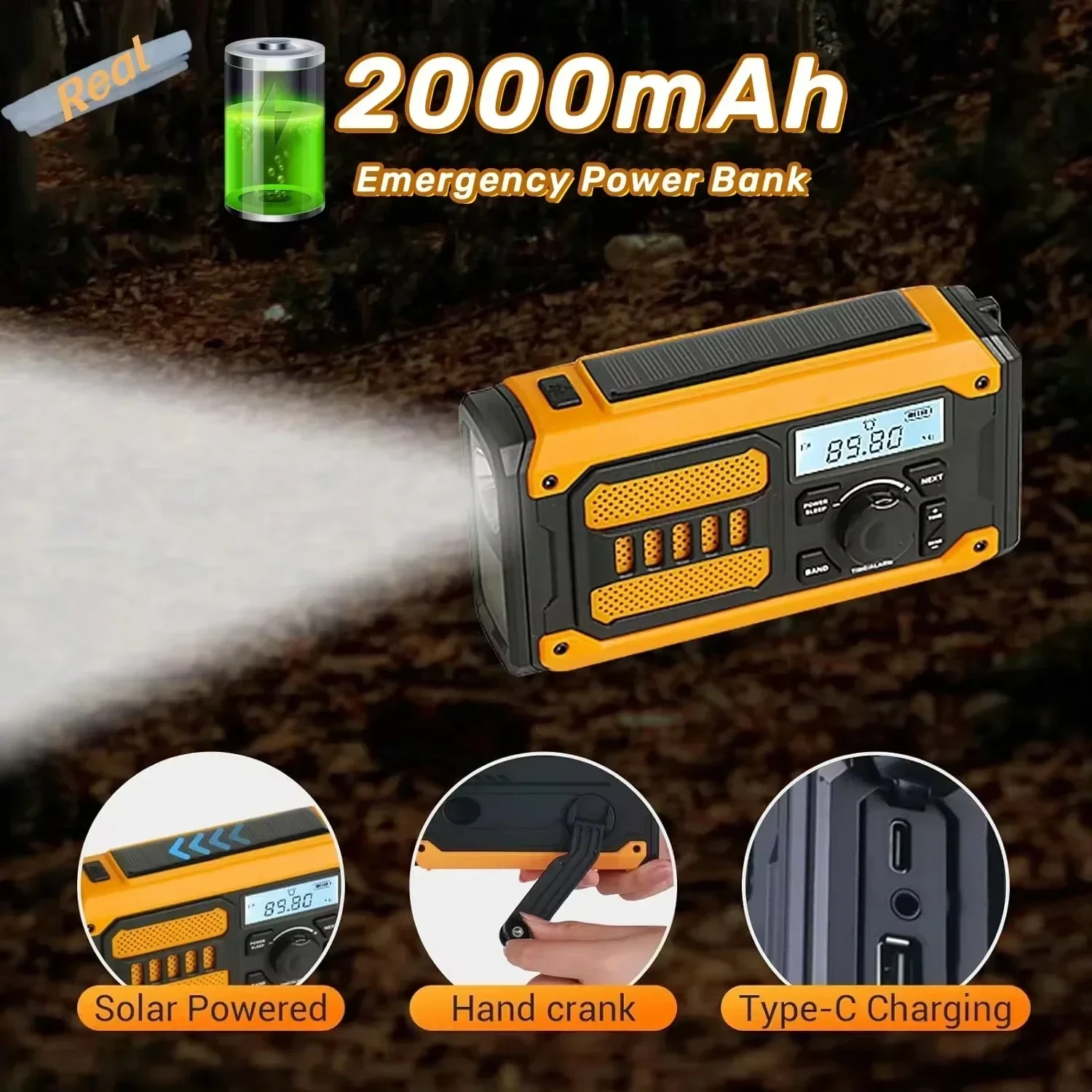 The built-in 2000mAh rechargeable battery not only powers the weather radio noaa alert, but can also be used as a power bank to charge your phone or other devices in case of emergency, so you can always stay connected.