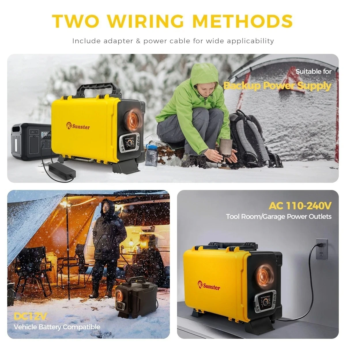 Dual Power Options:This versatile diesel air heater supports both 12V DC and 110-240V AC power sources, making it suitable for a wide range of vehicles and locations, whether on the road or at home.