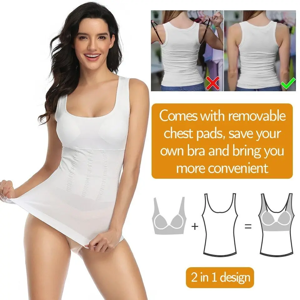 No hooks, zippers, or bulk! This curve-hugging cami shaper combines a built-in bra and slimming camisole in one seamless piece. Enjoy all-day comfort with lightweight support—perfect under blouses, blazers, dresses, or styled solo. Wash just one item instead of multiple layers!