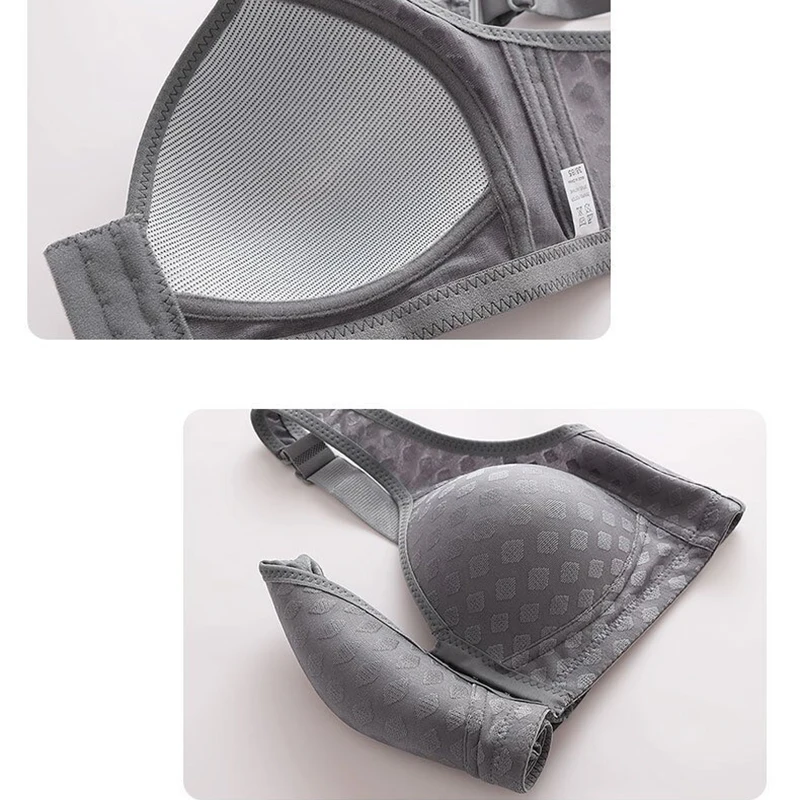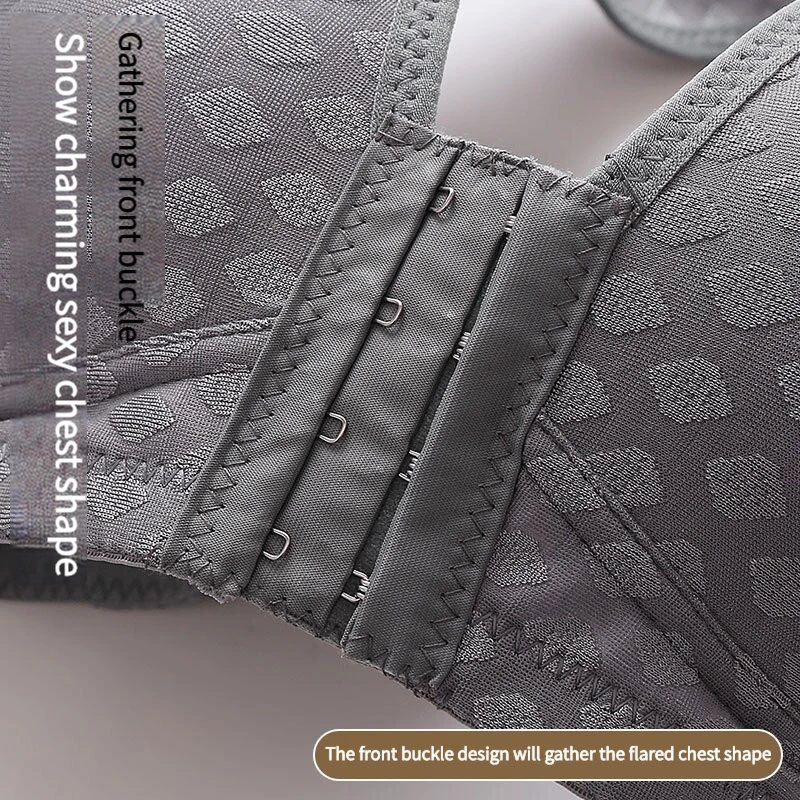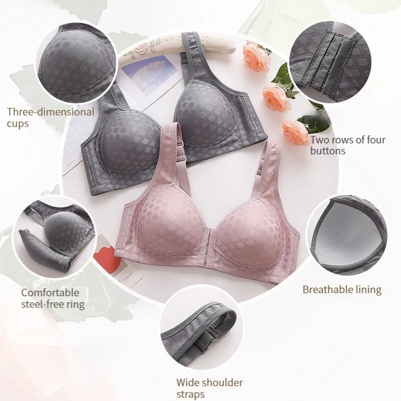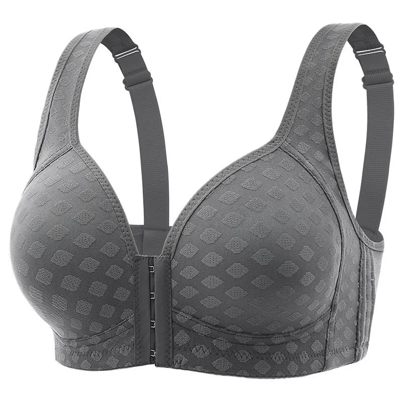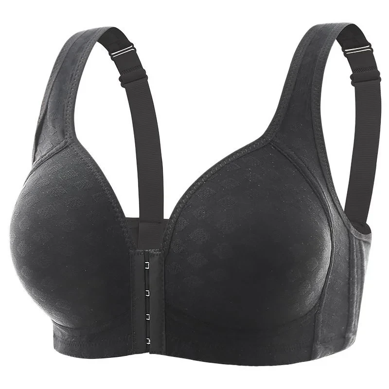 Plus Size Front Closure Bra for Women, Seamless Wireless Push Up Bralette, Plaid Print Lingerie Comfortable Brassiere