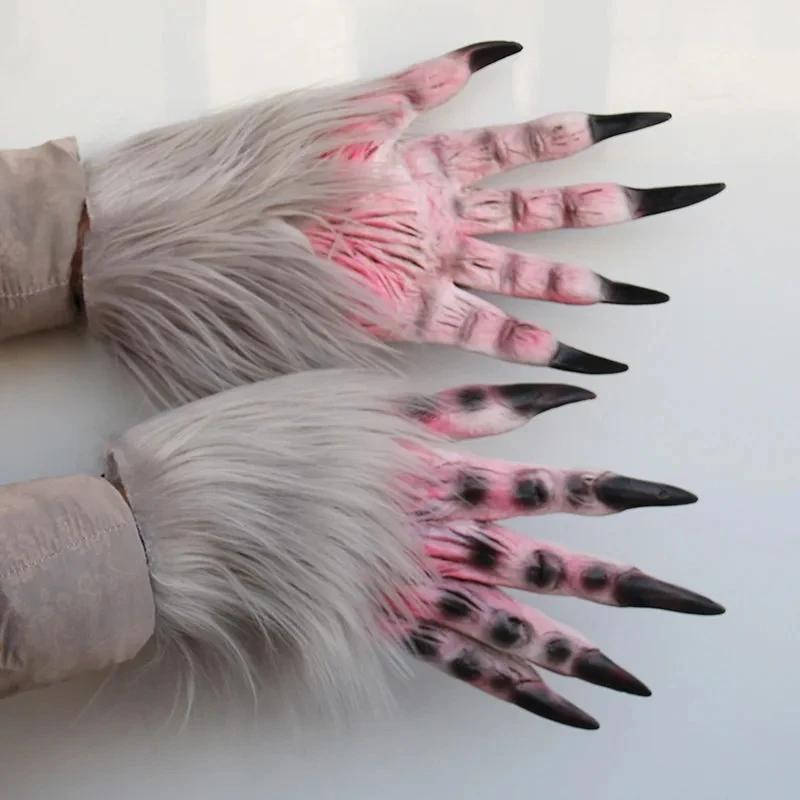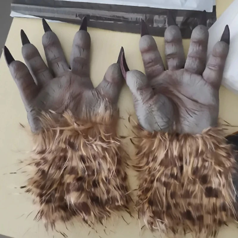 The Werewolf Latex Gloves with Fur Animal Realistic Gloves Halloween Party Masquerade Carnival Dress Up Costume Prop