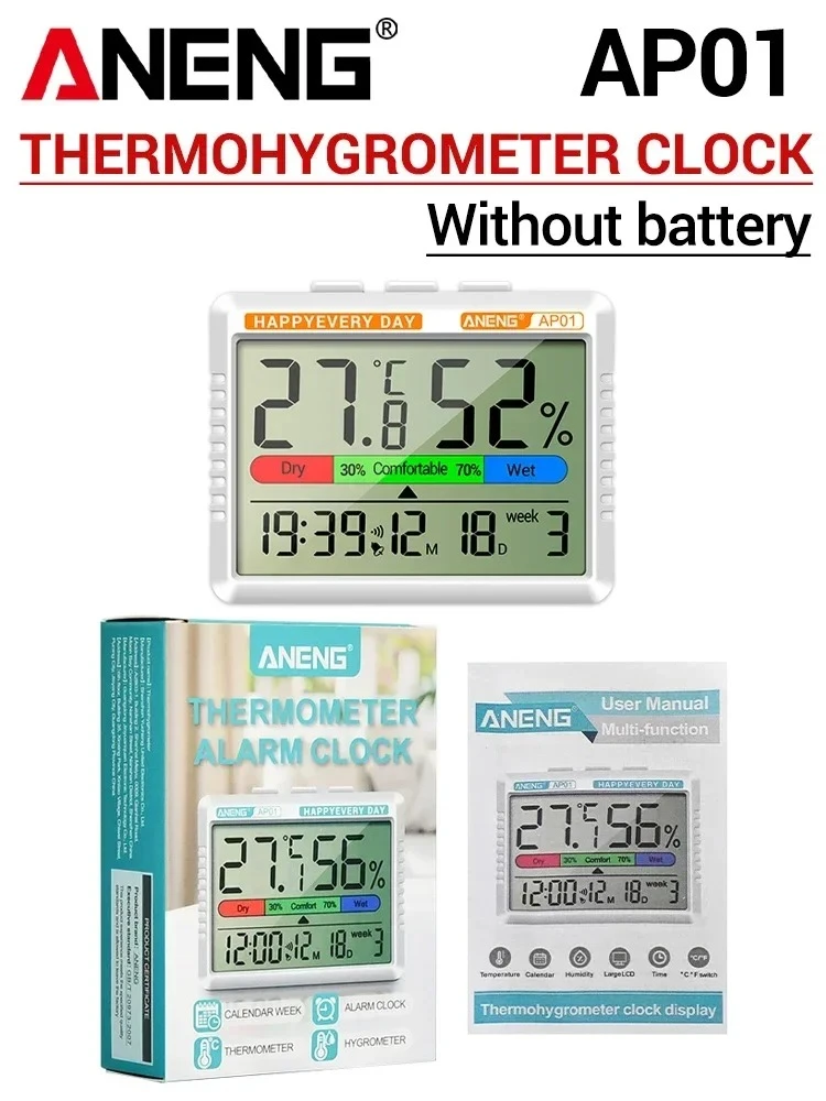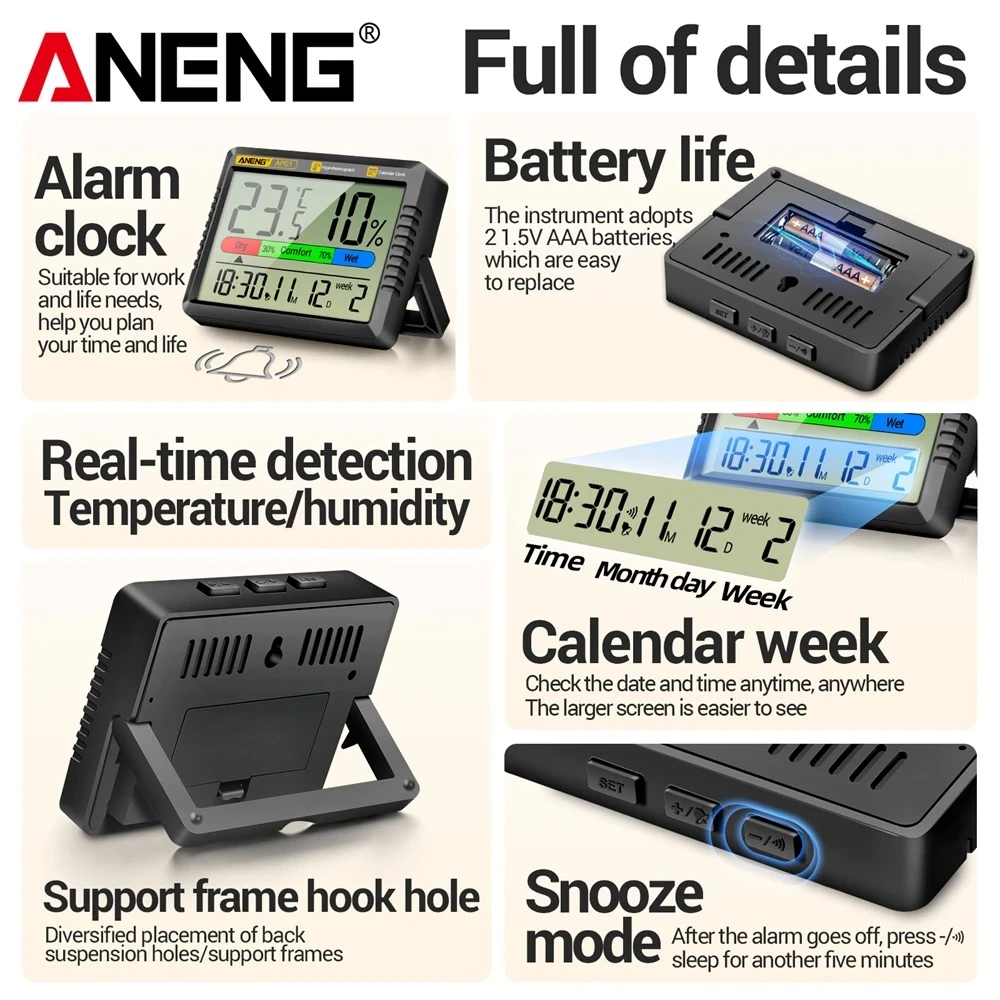 Thermohygrometer Electronic Clock Multiscene measurement Handheld Precision Digi