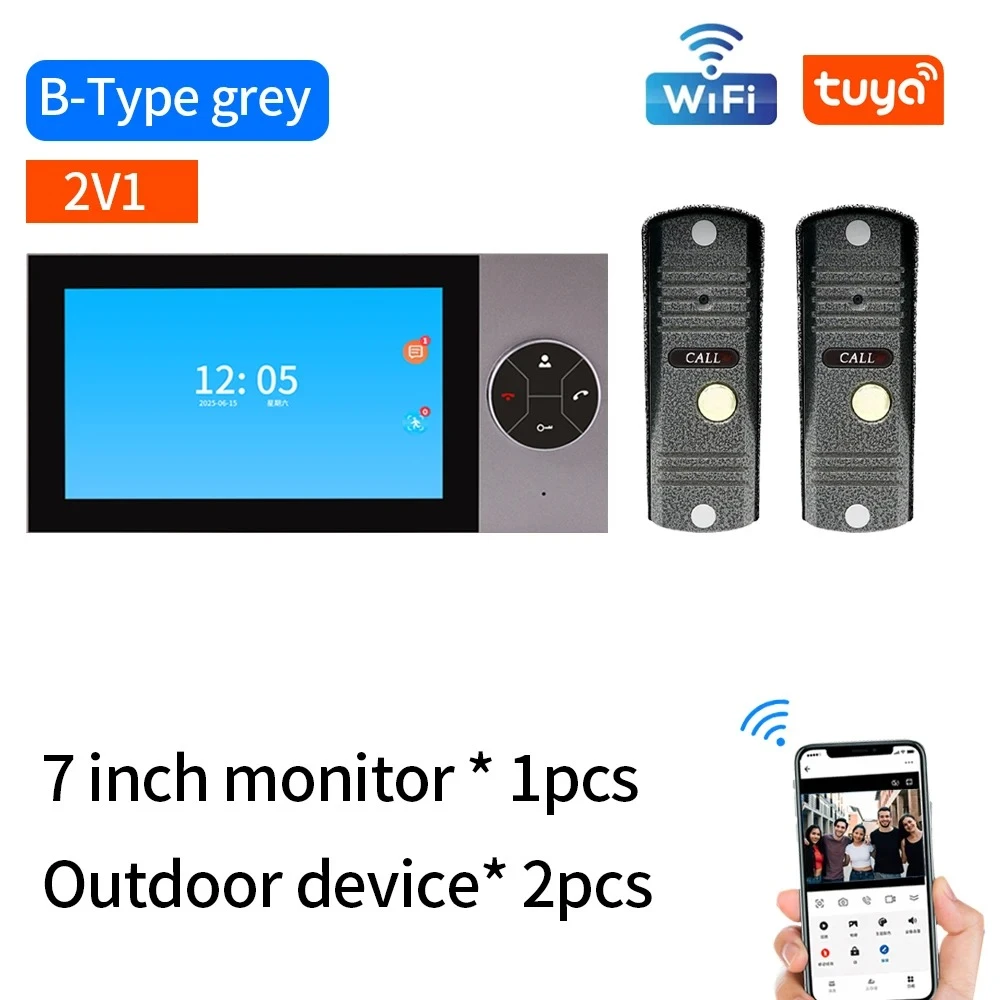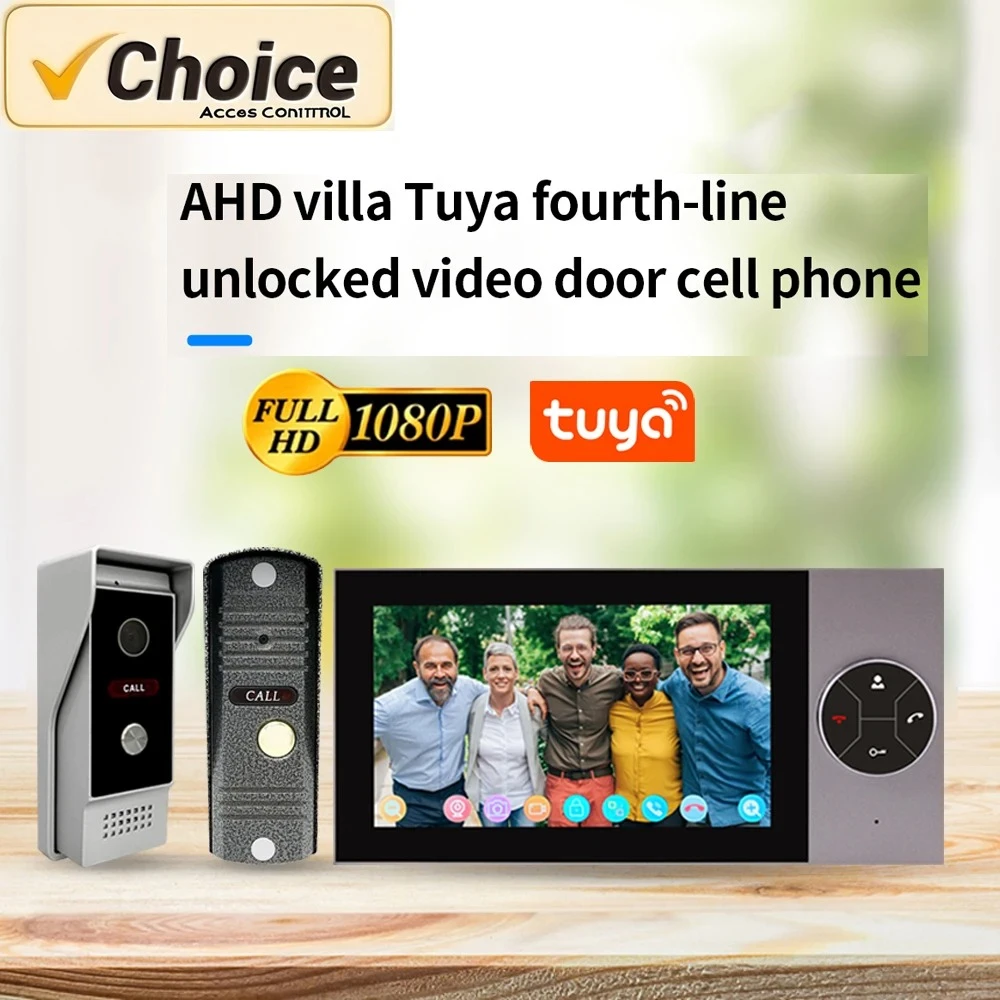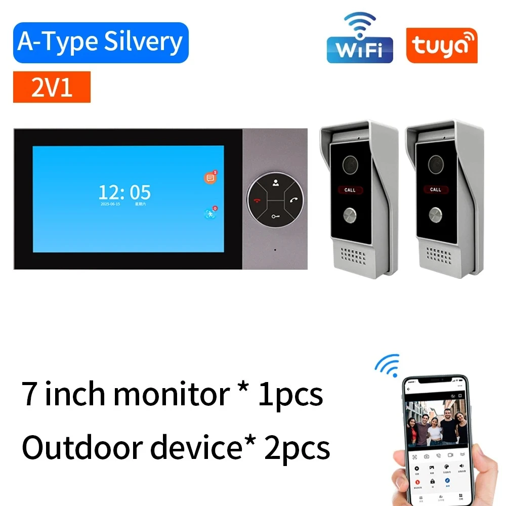 Tuya Smart Video Intercom System 7" 1080P IP65, Dual Connection (WiFi/Wired) with Alexa/Google Home, Commercial/Residential Door Product Description The product adopts the industry's common 4-wire system (RVV-4) connection, the indoor unit and outdoor unit for direct connection, simple and practical. While our products provide video intercom with visitors, they can also remotely unlock the door through the indoor unit, they can also remotely unlock the door through the indoor unit, allowing you to open the door with just one click without leaving home.This series of products adopts a new generation of visual doorbell program, stable and smooth video effect, strong anti-interference ability, effective use of the transmission distance up to 200 meters, outdoor unit using AHD HD camera, indoor unit using HD display, the image and intercom effect than the traditional common clear video doorbell (CVBs) to enhance the effect of 70%, HD high-definition will certainly bring you a new visual experience.This series of products support the maximum of two outdoor units and six indoor unit swith each other, do not need to add any relay equipment, cost savings. On this basis, we have reserved 2-way camera access function, which is convenient for customers to expand freely in multiple scenarios.