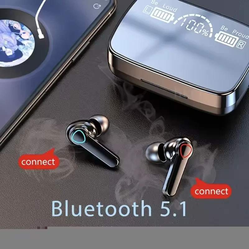 M19 TWS Bluetooth 5.3 Wireless Earbuds IPX5 Waterproof Stereo Earphones with LED Display/Smart Touch Control for All Smartphones