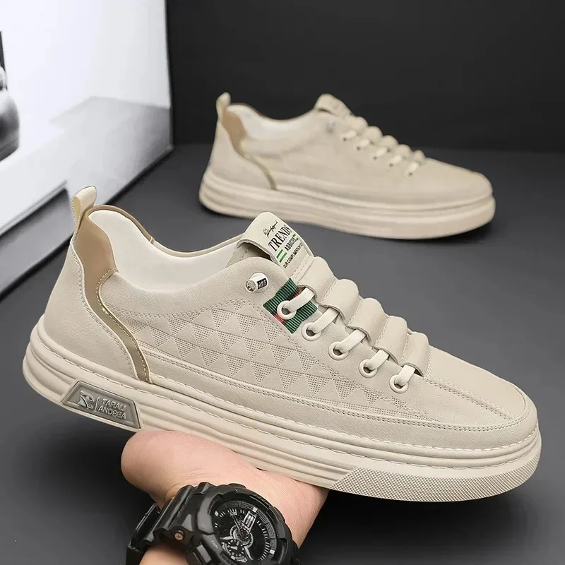 Upgrade your style with Men's Vulcanize Shoes White Leather Casual Shoes