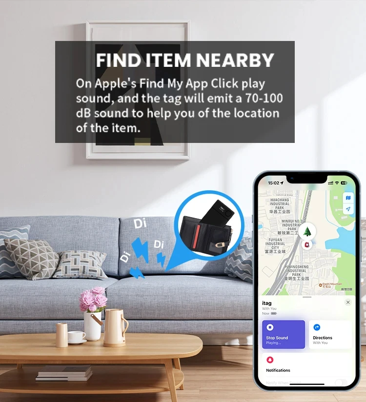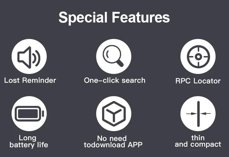 About the smart icard 1. " Find My " the network location Work with Apple Find My APP ,when the smart icard out of bluetooth range with your iphone ,you will get notifacation on iphone ,what's more , it can be tracked without distance limit to anti lose ,as long as there is other ios devices near by 2.Lost Mode - Enabled Enter your contact phone number, etc. If the device has been disconnected from your phone for more than a while, and there is another Aple device near the device,you will receive notifications and the latest location of the smart card 3.Play the sound Mobile phone and device in the BLE model domestic(generally about 20 meters),in the " Find My" App, click, play the sound,the device will issue a prompt sound, help you quickly find the near by smart card. 4. Rechargeable battery Wireless Charging ,it will make it more convenient for power supply (charging stand is not included)