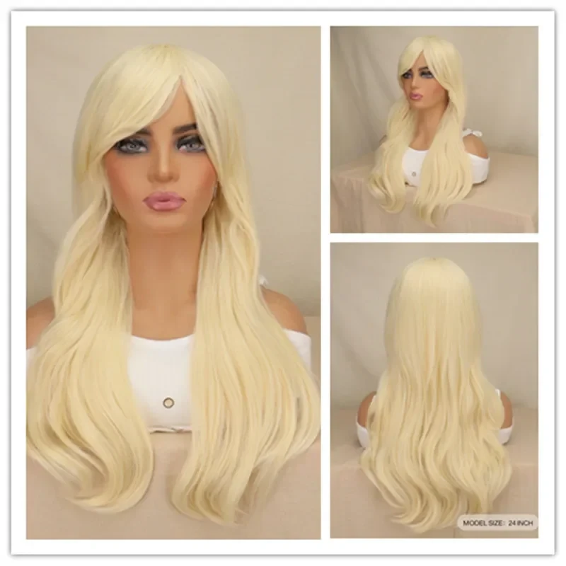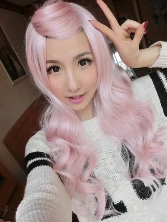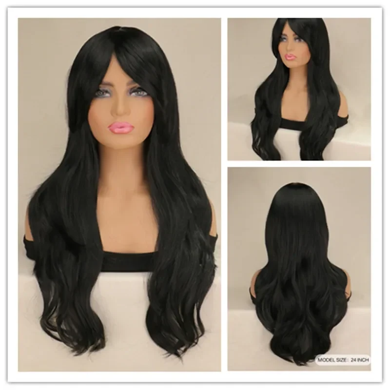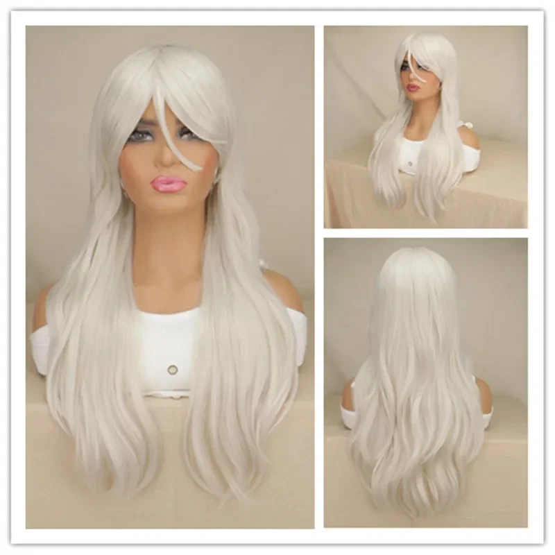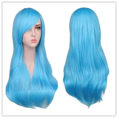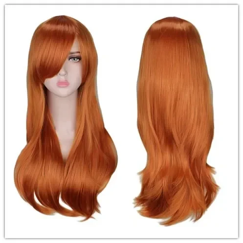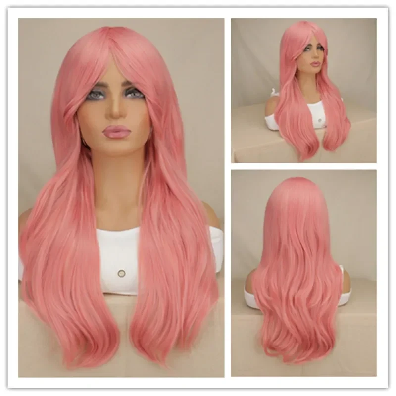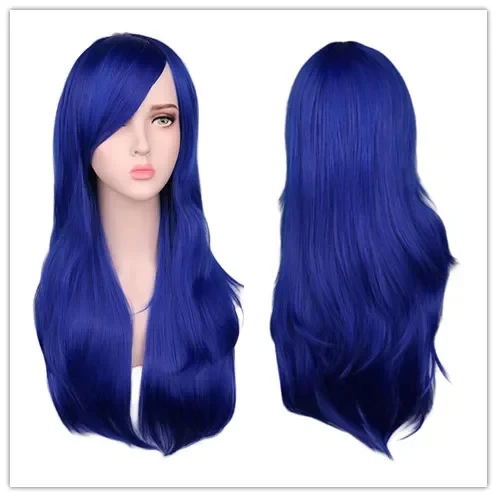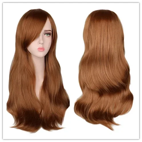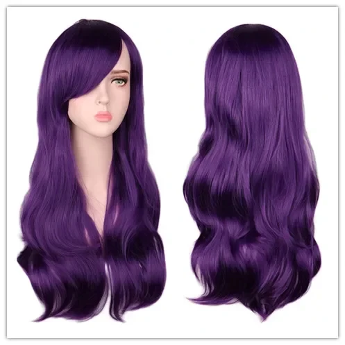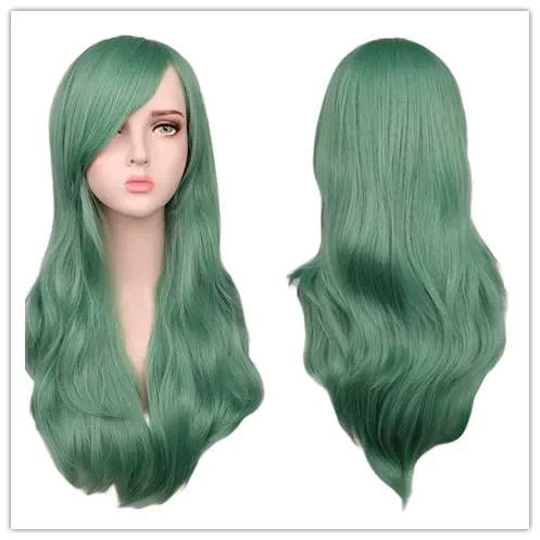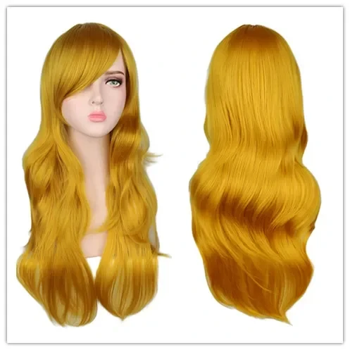 Women Long Wavy Cosplay Wig Red Rose Pink Black Blue Sliver Gray Brown Temperatu