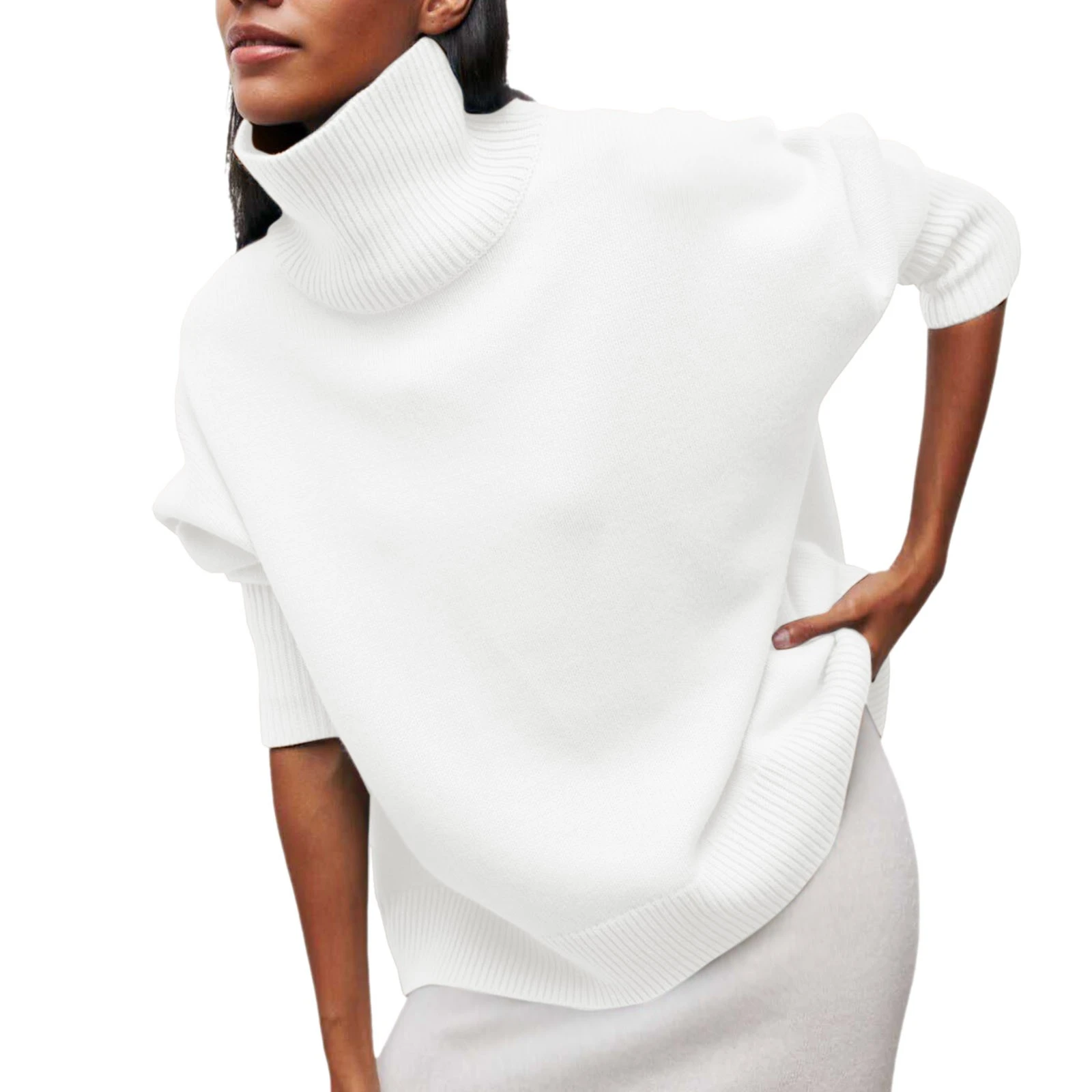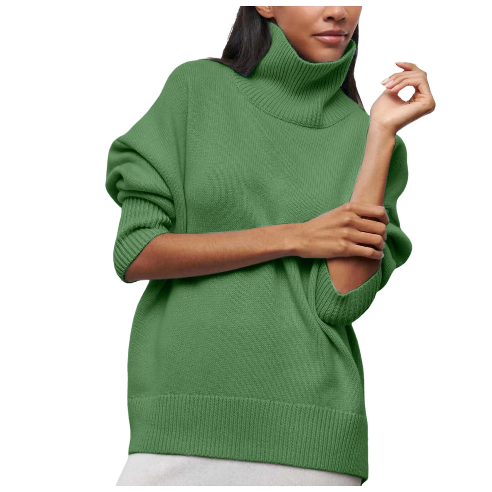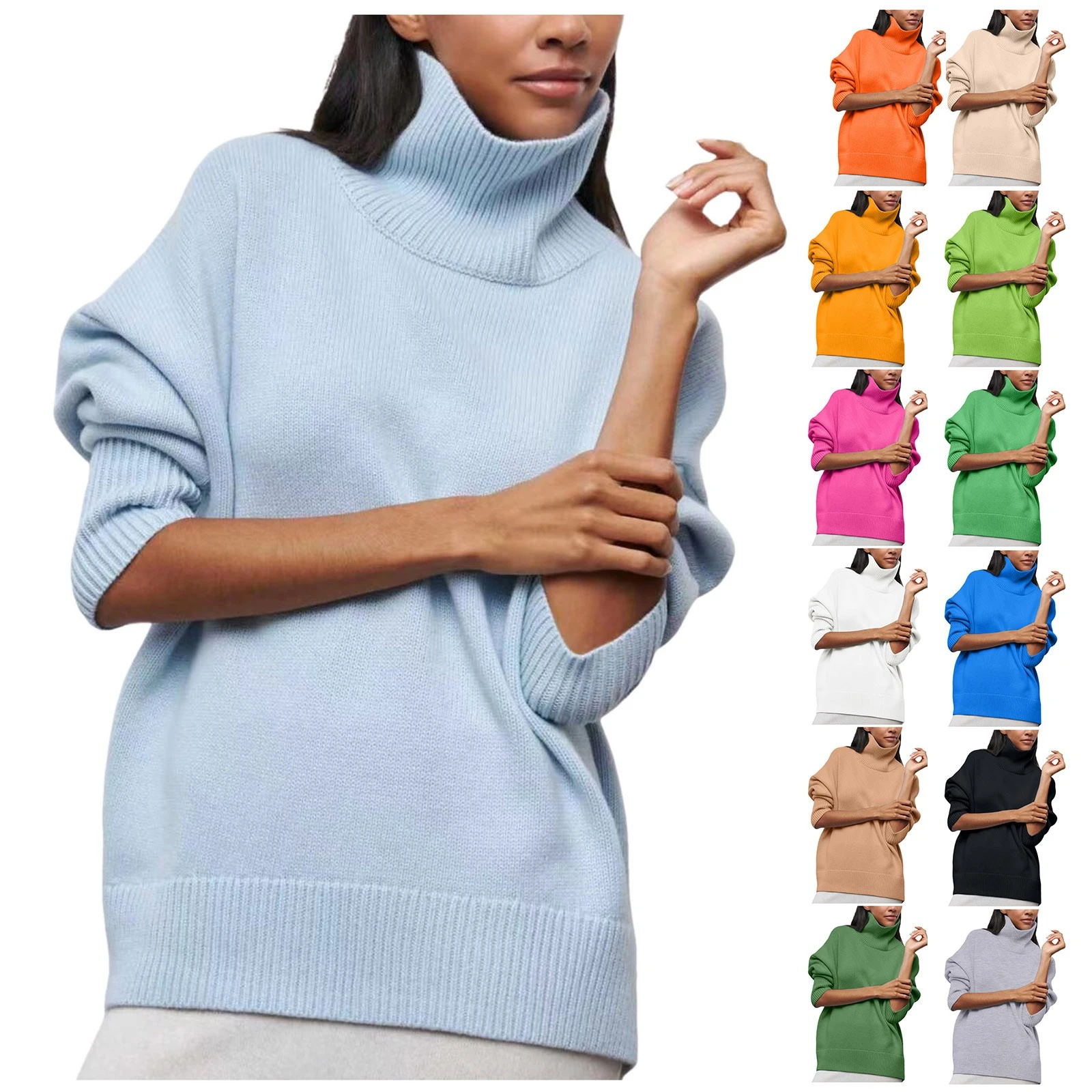 Women Fall Turtleneck Sweater Long Sleeve Oversized Chunky Knitted Pullover Sweaters Basic Casual Tops BlouseFeatures: