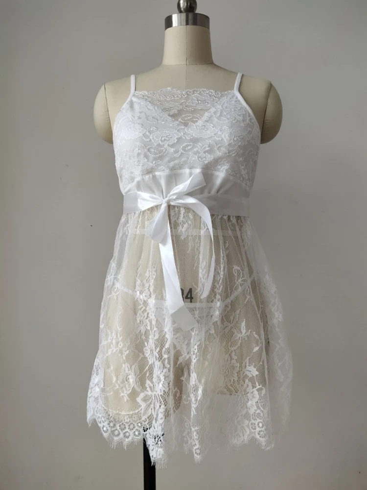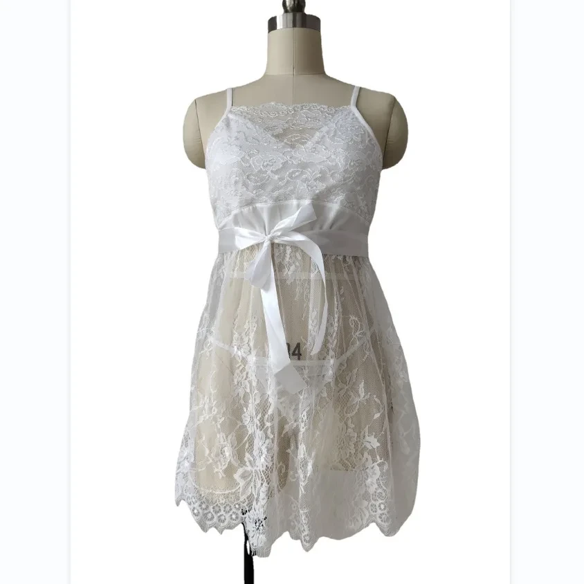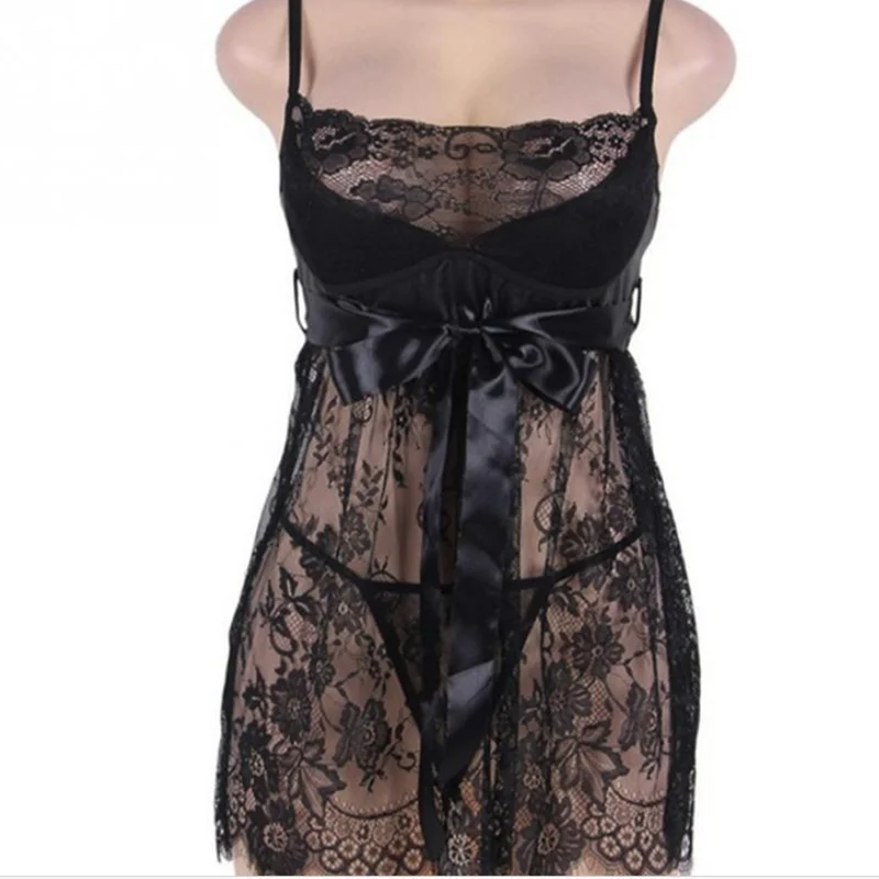 Plus Size Women Lace Nightdress See Through Sleeping Dress Breathable Sleeveless Babydoll Lingerie Adjustable Spaghetti Straps Package Included: 1* Sexy lingerie+1* G-string